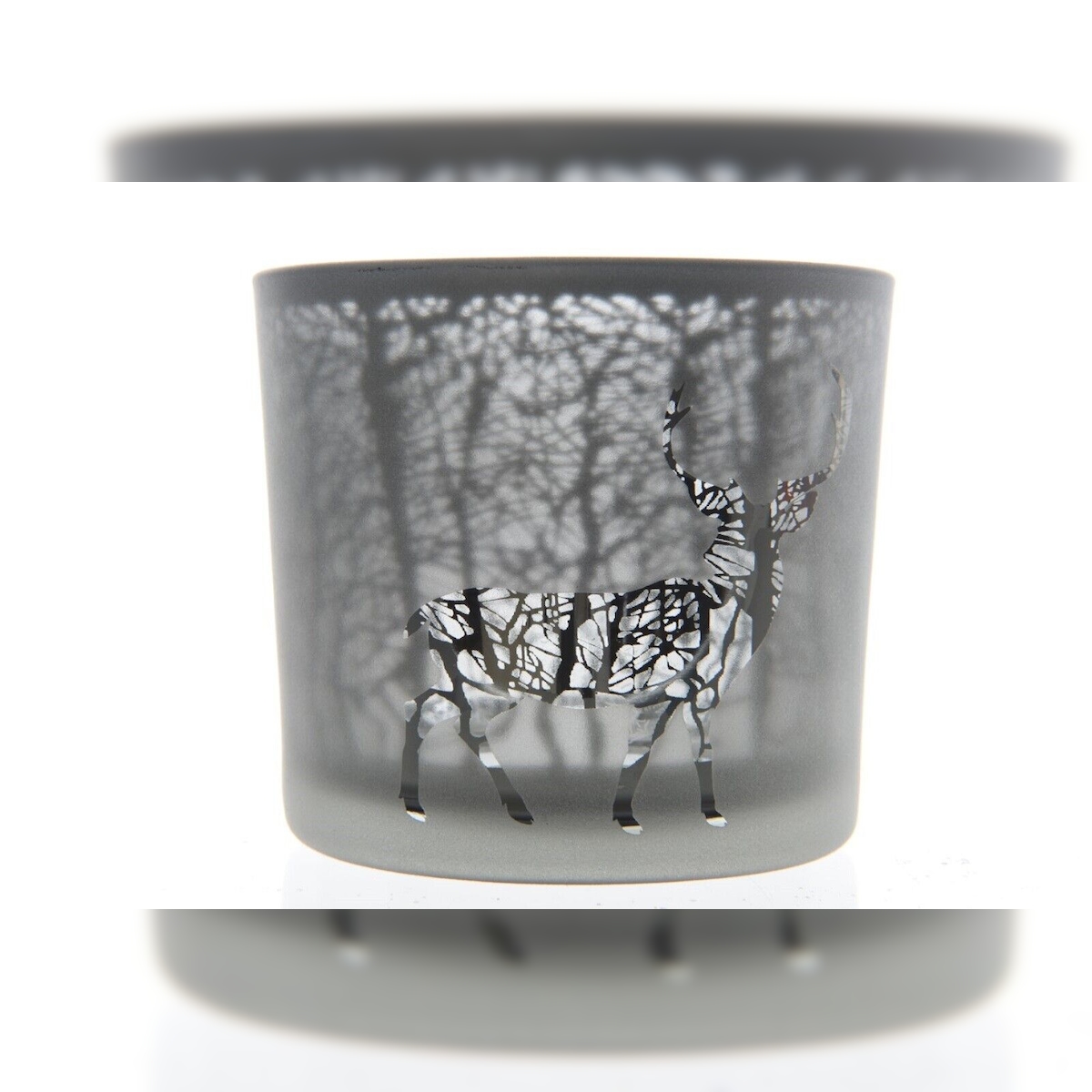 Teelichthalter Glas Windlicht Laser Hirsch grau Ø 7,3 x 8 cm