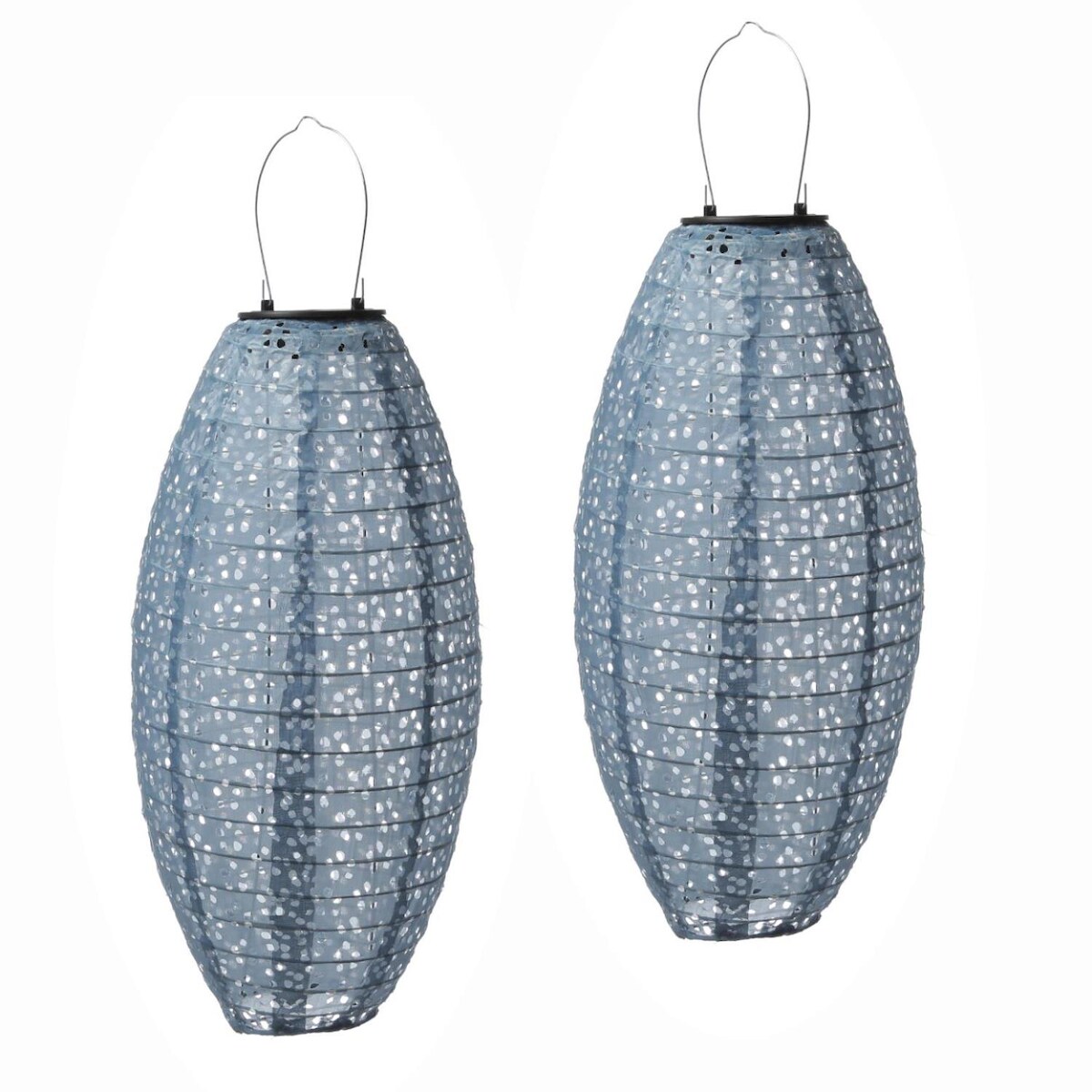 MARELIDA LED Solar Lampions oval Blumenmuster blau 40cm Balkon Terrasse 2St