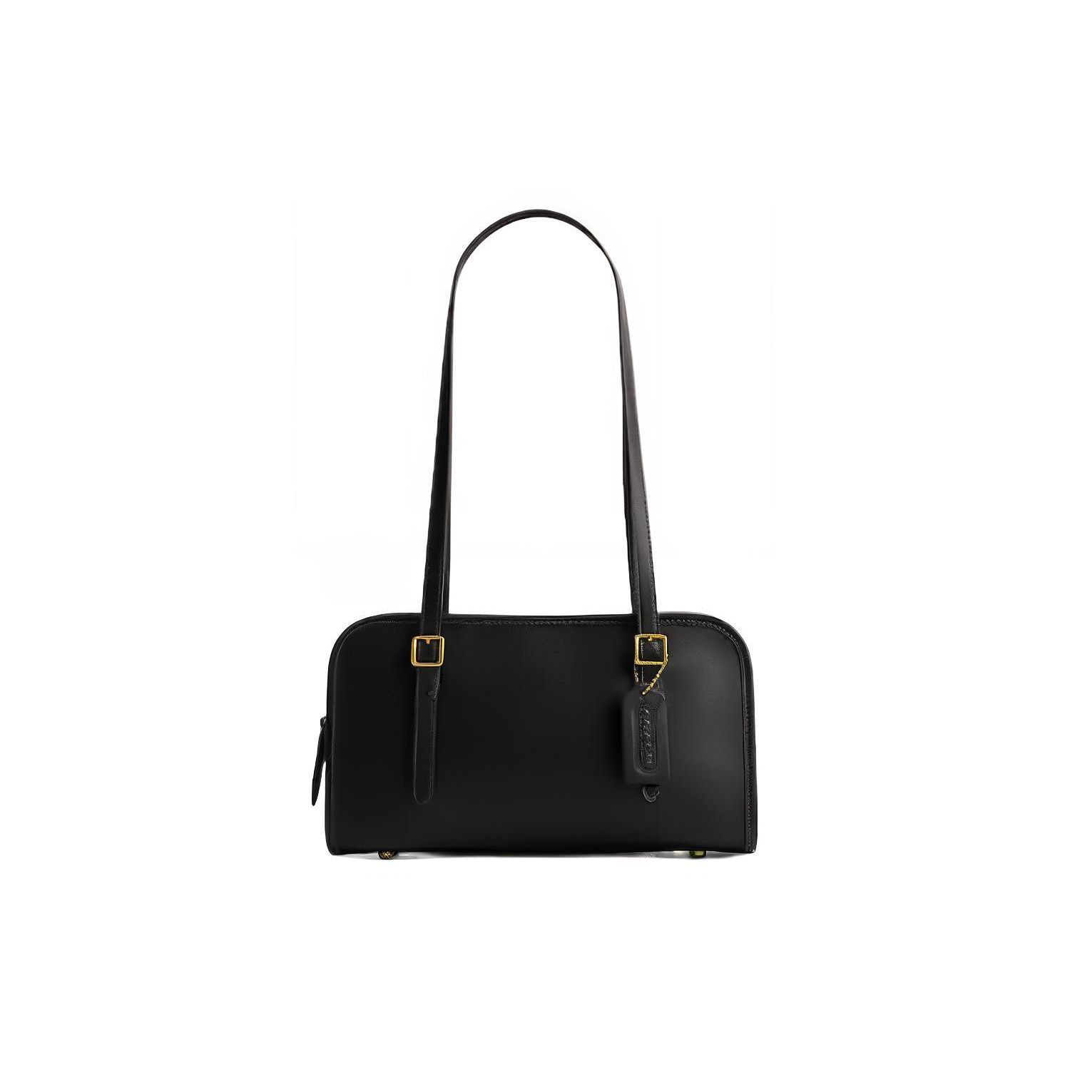 Coach Swing Zip 25 Solid Color Embossed Logo Zipper Closure Card Slot Protective Feet Leather Tote Shoulder Bag Medium Women bags Black CM565-B4BK