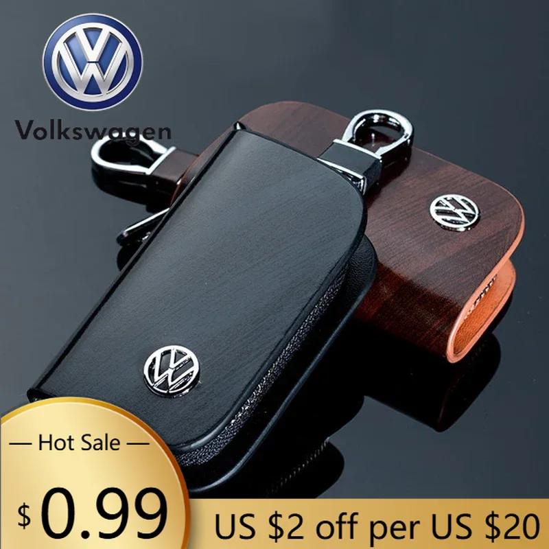 2026 Nieuw Voor VOLKSWAGEN VW Leer Auto Logo Sleuteletui Cover Sleutelhanger Beschermtas voor Volkswagen Passat Santana Tiguan Scirocc zwart