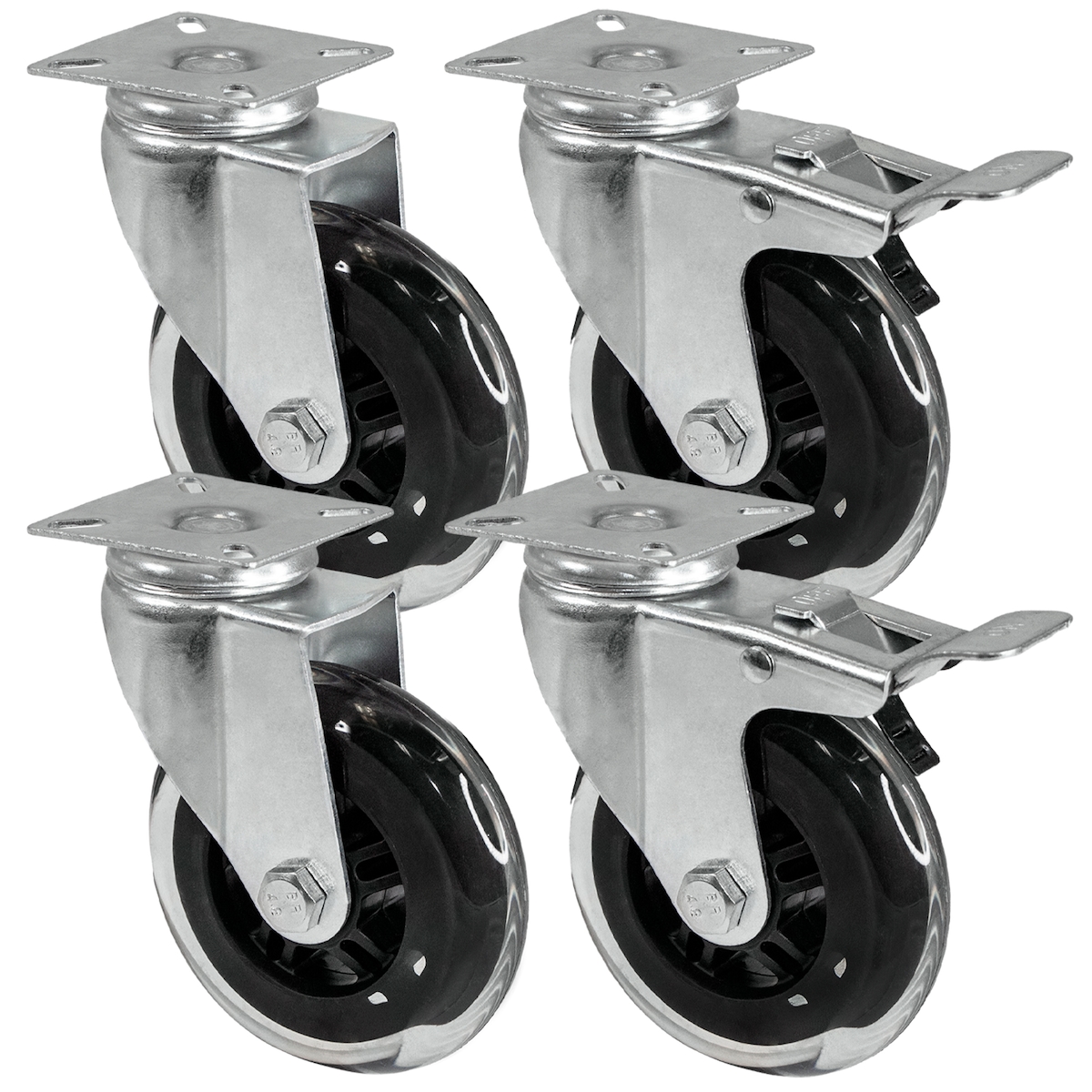 PRIOstahl Transportrollen 100mm Möbelrollen 2 Lenkrollen + 2 Lenkrollen mit Bremse Transparent