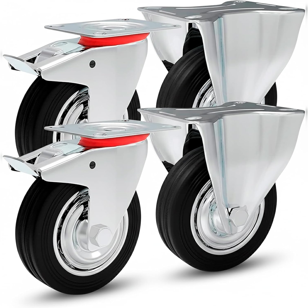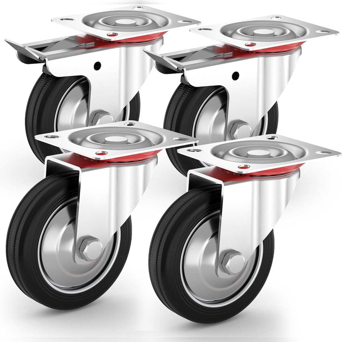 PRIOstahl Transportrollen 100mm Rollensatz 2 Lenkrollen + 2 Lenkrollen mit Bremse schwarz Schwerlast