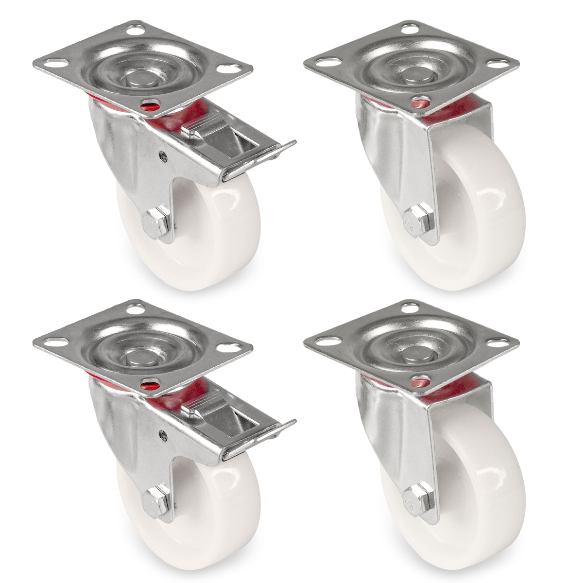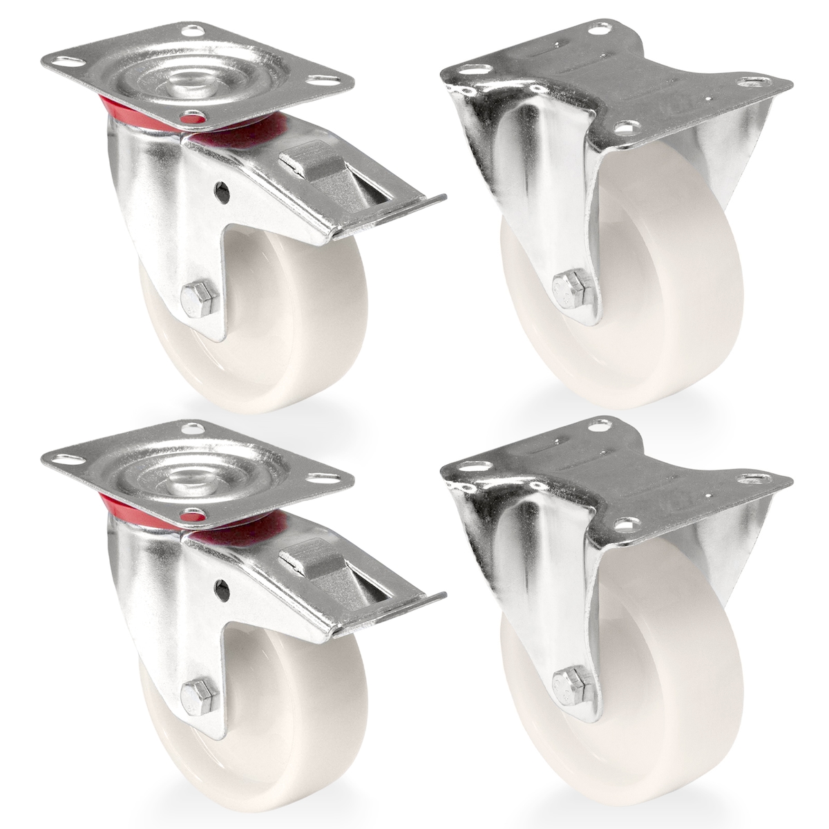 PRIOstahl Transportrollen 100mm Rollensatz 2 Lenkrollen + 2 Lenkrollen mit Bremse Weiß Schwerlast