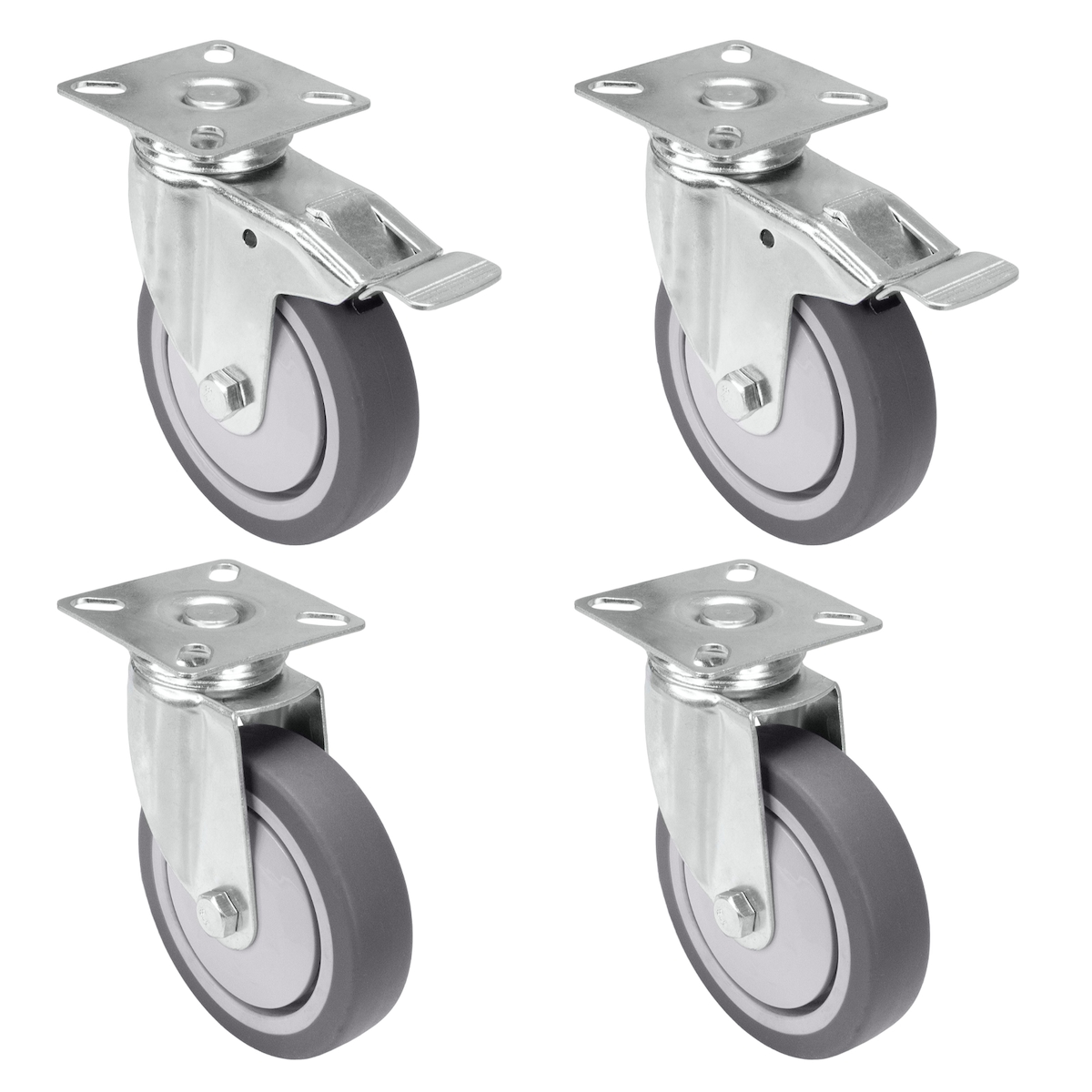 PRIOstahl Transportrollen 100mm Graue Rollen 2 Lenkrollen + 2 Bremsrollen Möbelrollen Spurlos Leise