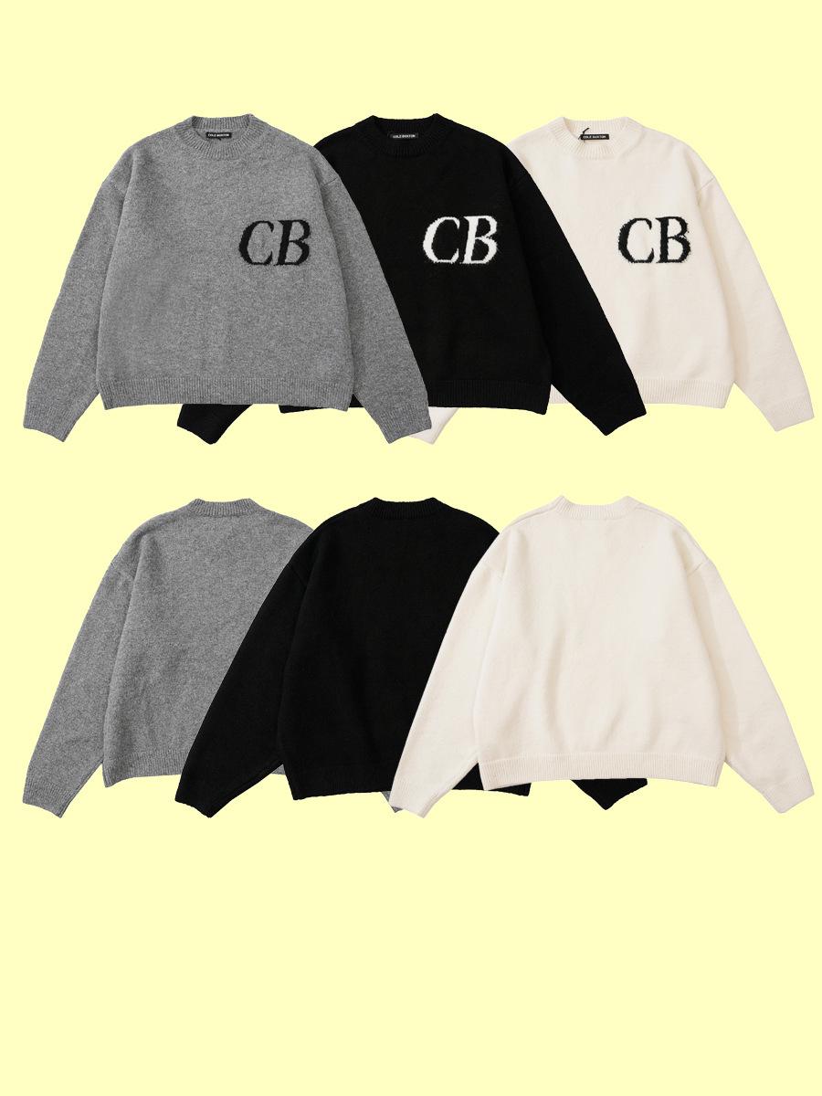 Sweat-shirt à col rond ample unisexe CB Jacquard Lettre haut de gamme Cole Buxton cm grise