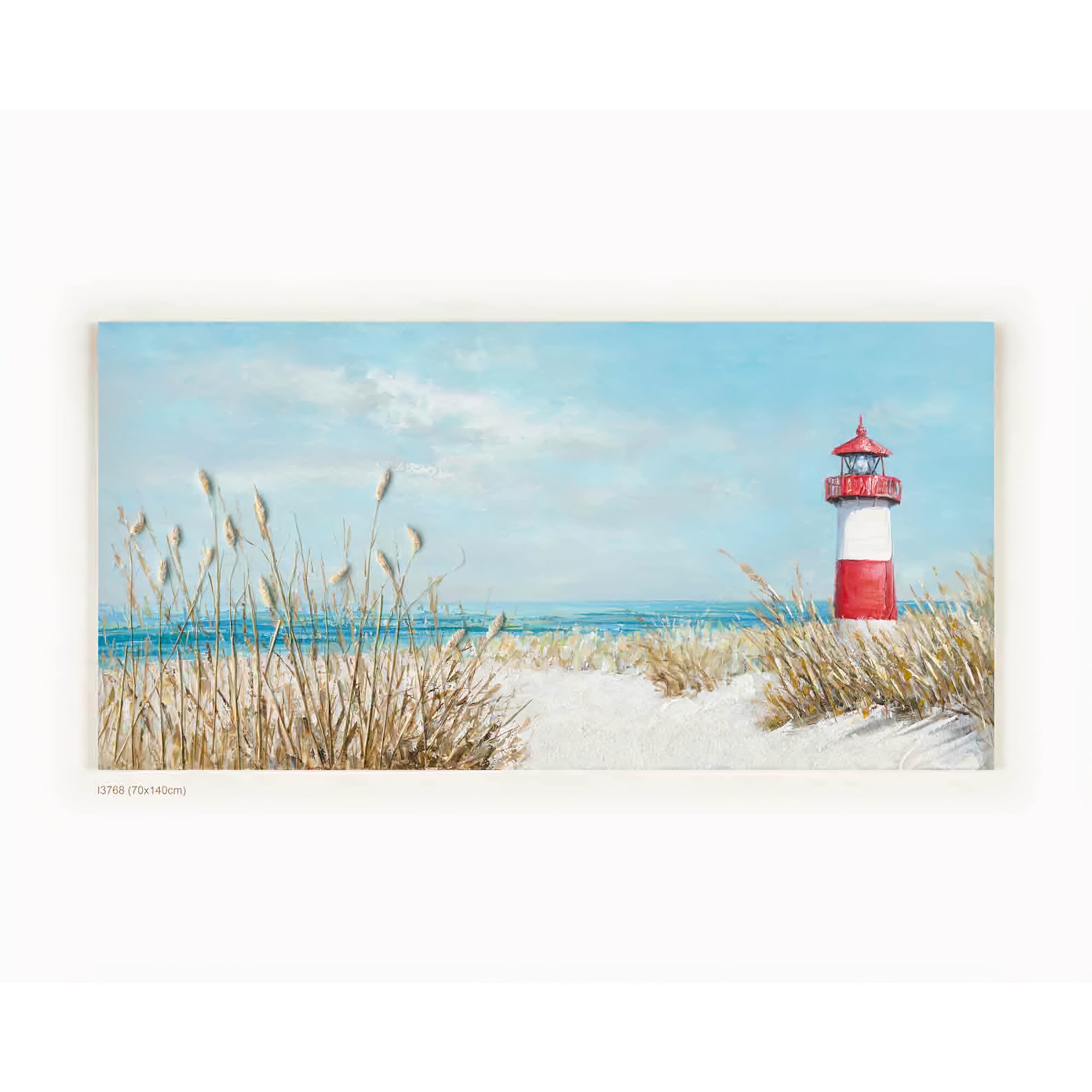 La Casa »Leuchtturm am Strand« Ölbild 140x70 cm auf Leinwand