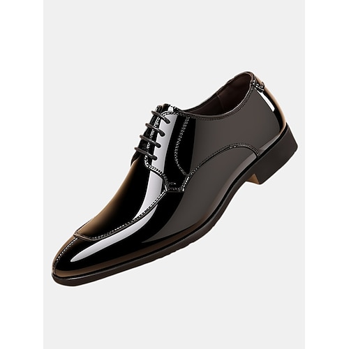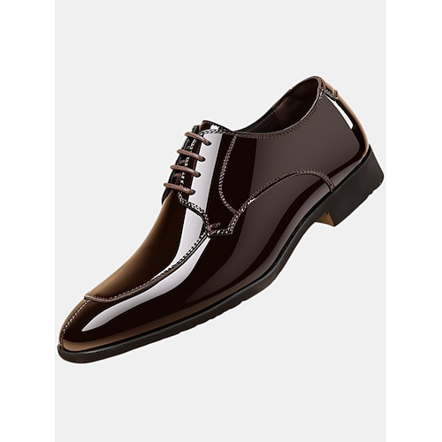 scarpe eleganti da uomo in stile oxford con lacci, color marrone scuro lucido, per ufficio, banchetti e occasioni formali