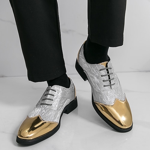 scarpe oxford da uomo in similpelle con finitura metallizzata, look lucido alla moda per uomini alla moda, ideali per eventi serali