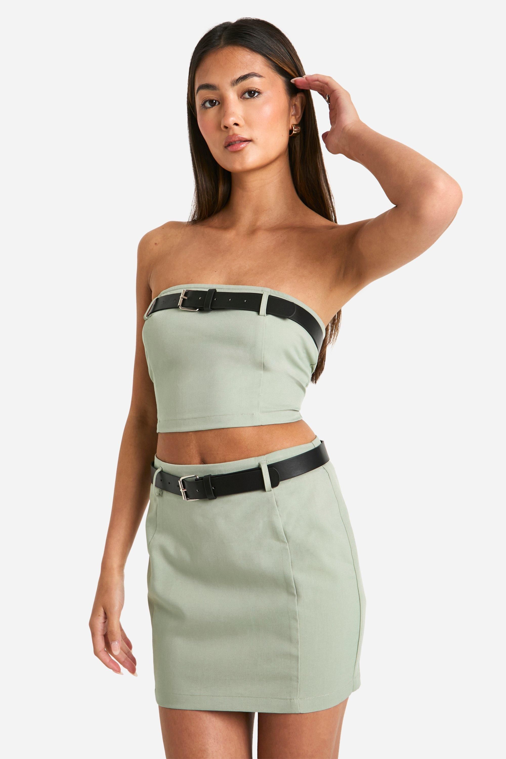 Boohoo Womens Belt Detail Mini Skirt - Green - Size 14 UK | Boohoo Sale | Discount Designer Brands