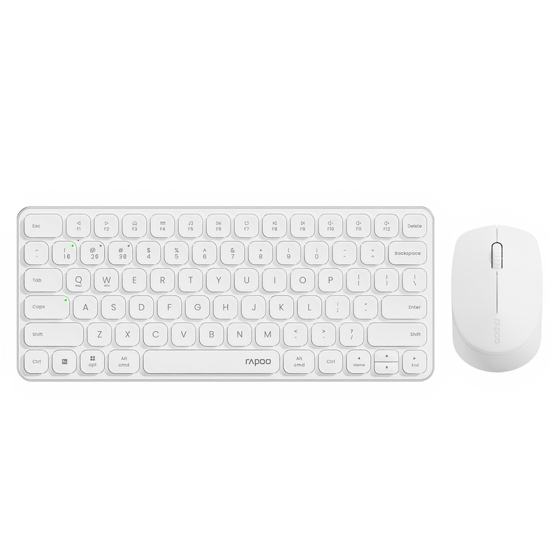 Rapoo 9010M Multi-Device Tastatur- und Maus-Kombination, 2,4 GHz/Bluetooth 5.0/4.0 Kabelloses Tastatur- und Maus-Set für Windows/Mac/Linux/Chrome, unterstützt 4 Geräte, flaches, leises Klicken, batteriebetrieben – Weiß