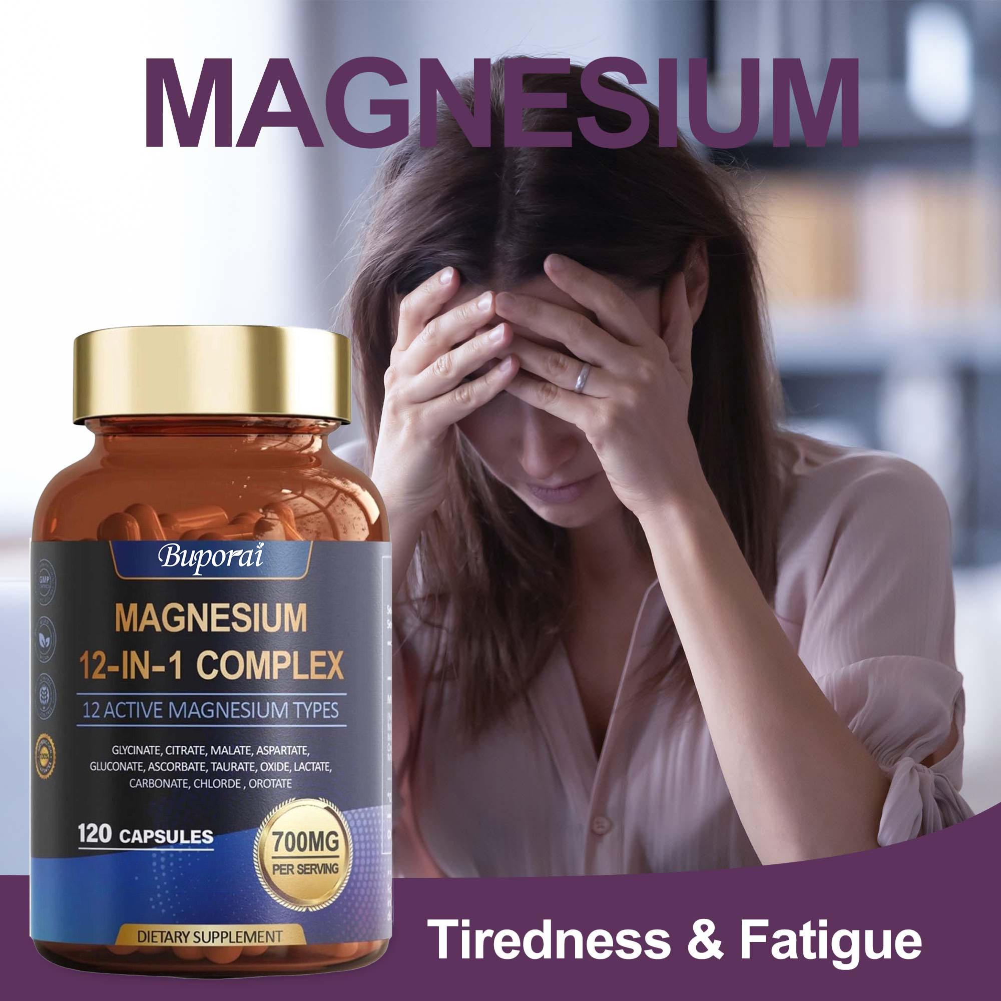 Complexe Magnésium 12 en 1 - Glycinate de Magnésium, Citrate, Malate, L-Thréonate