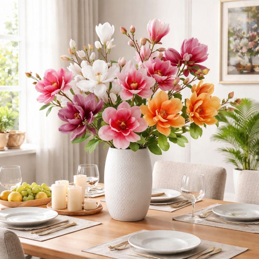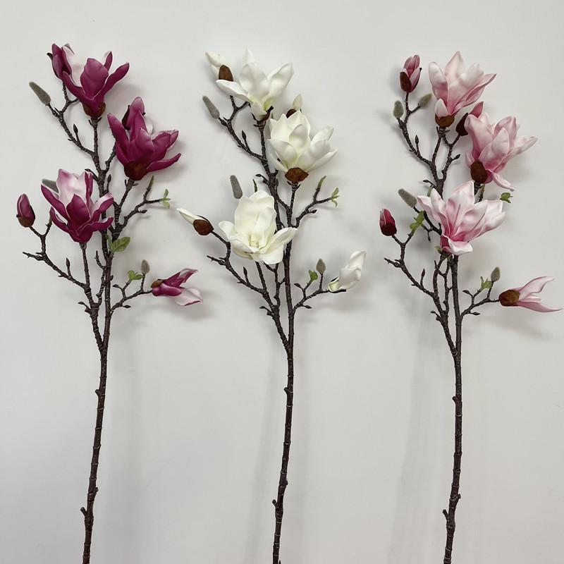 Silkemateriale Kunstig Magnoliablomst 60 cm Lengde Simulert Magnolia Festdekorasjon Hvit