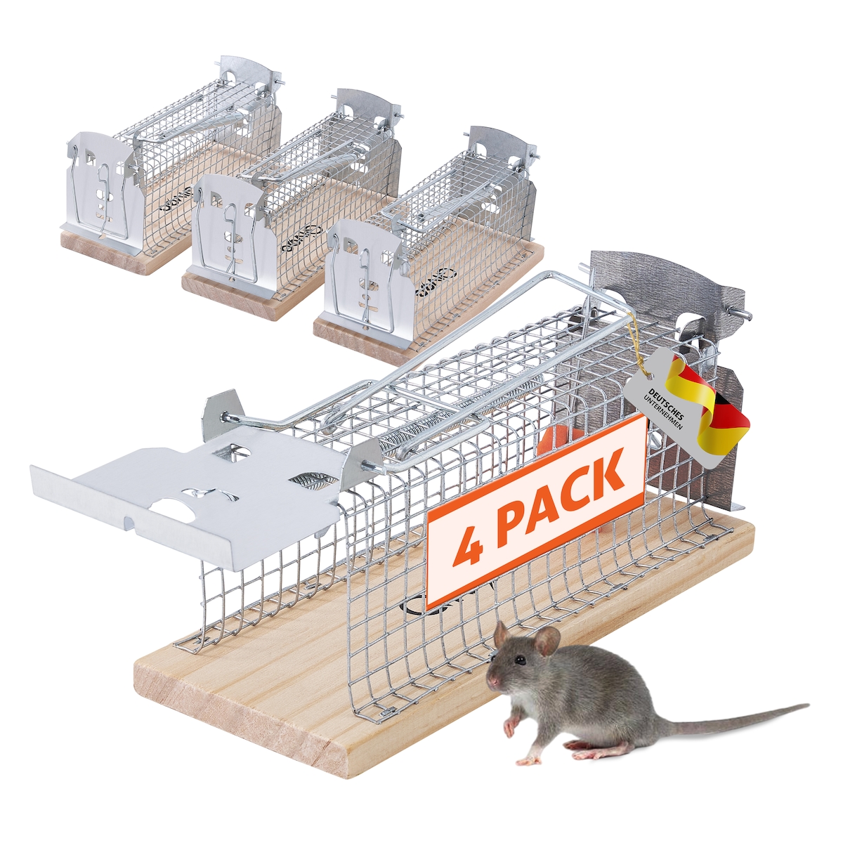 Qivee 4x Mausefalle Lebend Drahtkasten Mäuse Tier Nager Falle Wiederverwendbar