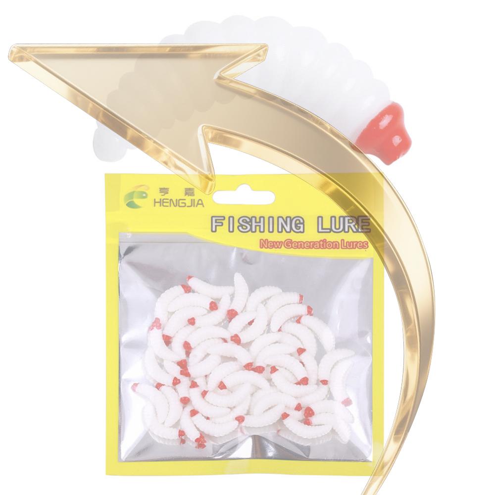 50 Stück 24mm Künstliche Mehlwürmer Köder Riechen Würmer Angelköder Bionische Maden Form Köder für Süßwasser Meerwasser