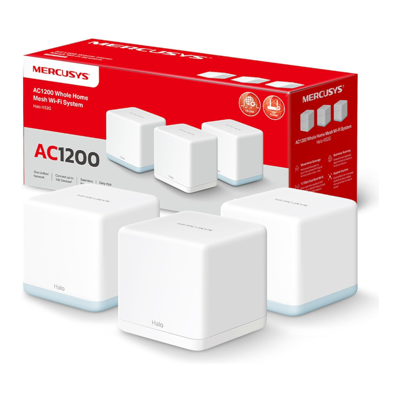 MERCUSYS Halo H1500X Wi-Fi 6 Mesh WLAN Set (3er Pack), AX1500 Dual Band Router und Repeater, Gigabit-Port, nahtloses Roaming, MERCUSYS App