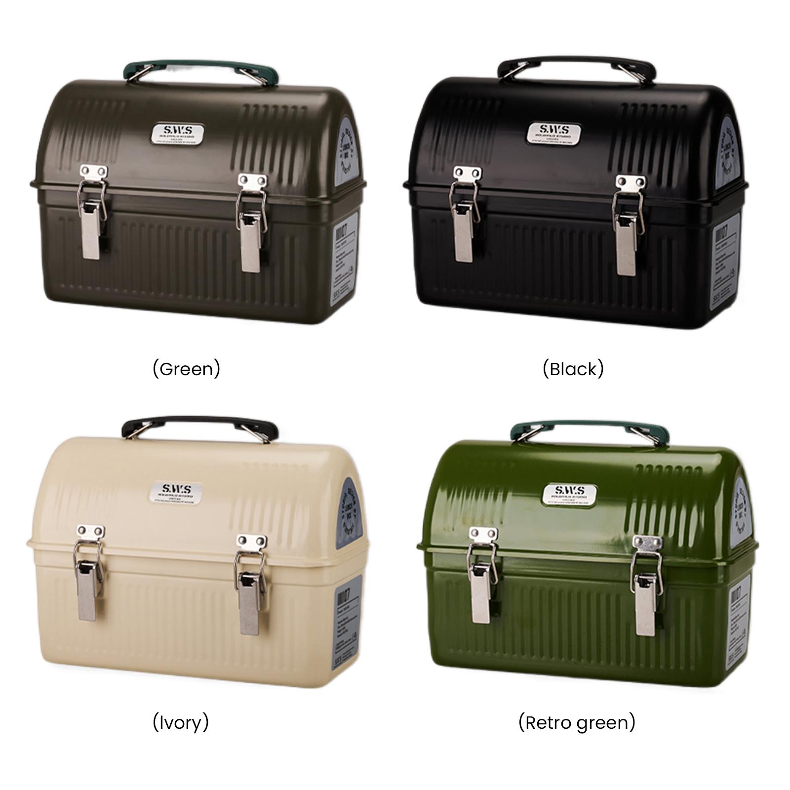 Lunch Box with Handle and Latch Vintage Metal Lunchbox Retro Metal Containers for Office Picnic Hiking Beach