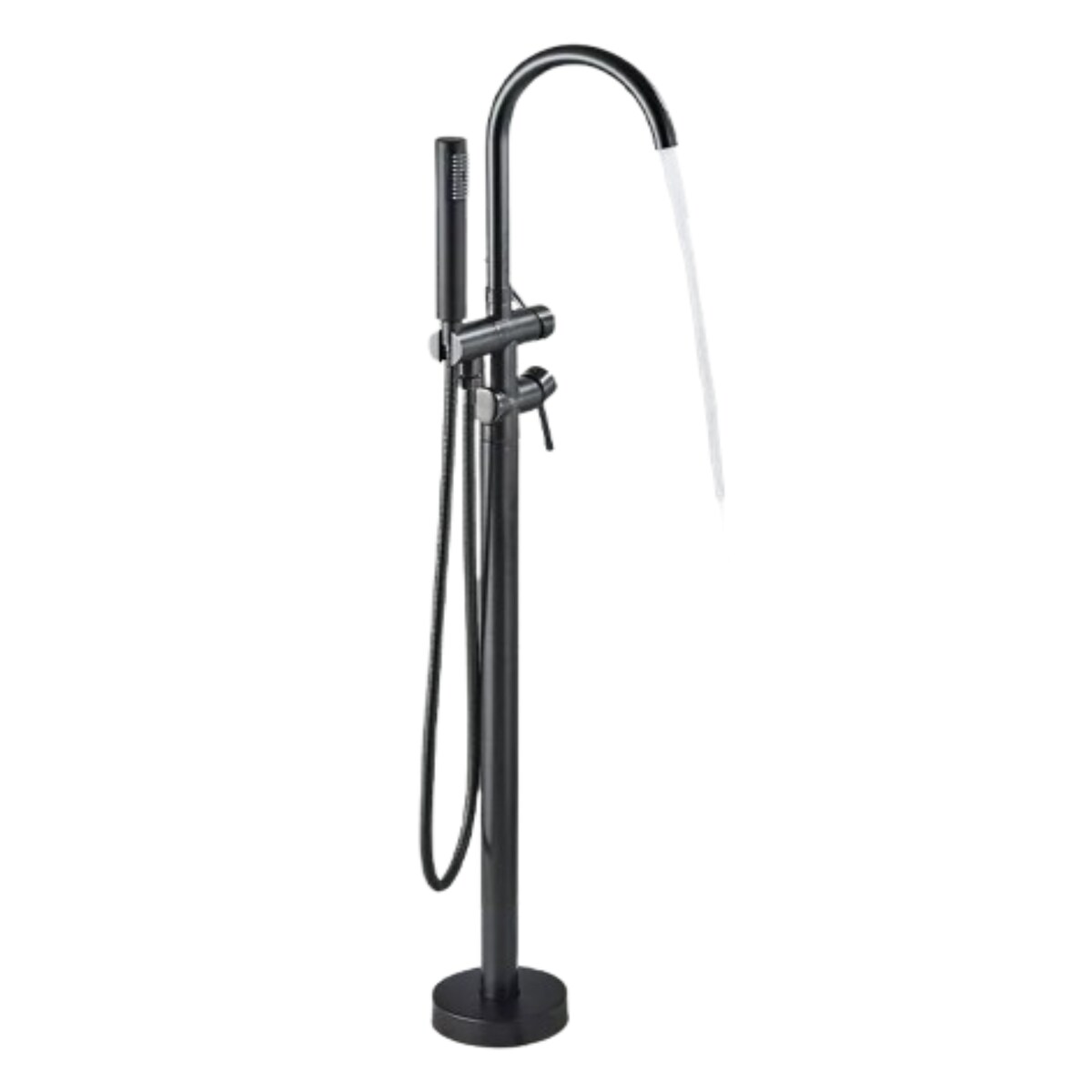 KLARWERK JANA | Premium Freistehende Armatur für die Badewanne in Schwarz | Edelstahl Standarmatur inkl. Handbrause |Mischbatterie Badewanne Bodenmontage Hotel