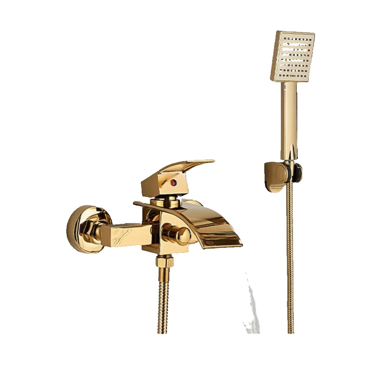 KLARWERK "ROSA" | Wasserfall Badewannenarmatur Gold Dusche |Edelstahl, Inklusive Handdusche und Halterung | Mischbatterie Badewanne Thermostat Komplett-Set