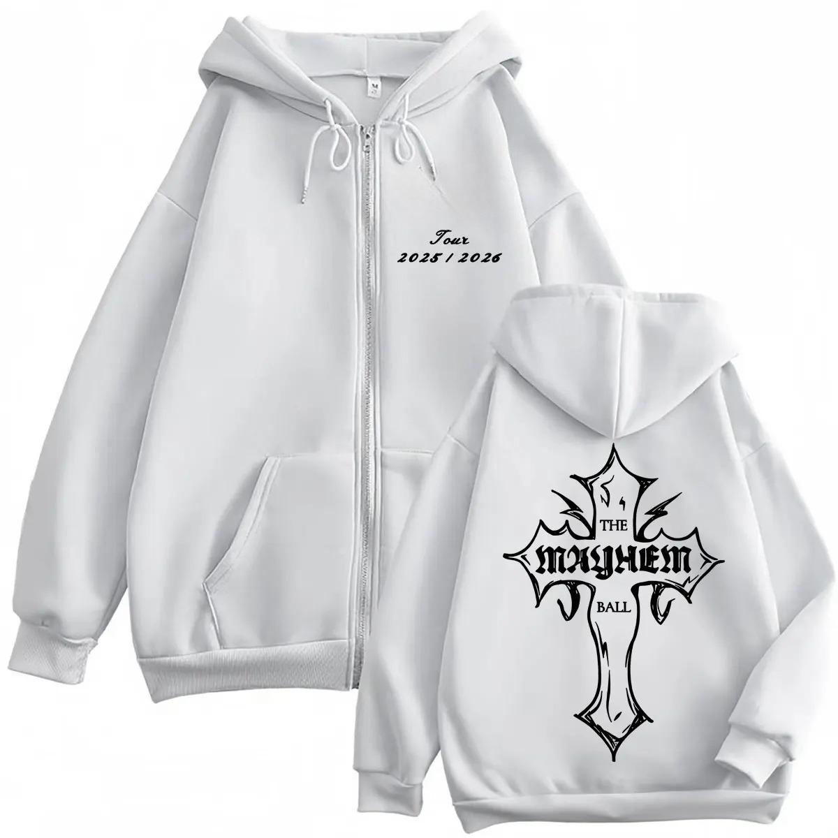 Lady Gaga The Mayhem Ball Tour 2025 Zipper Hoodie Men Women High Quality Fashion Hooded Sweatshirt Casual Loose Fleece Pullovers cm gray