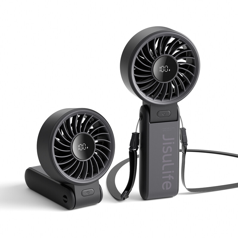 JISULIFE Portable Handheld Fan Life 7, 5000mAh Rechargeable, High-Power Motor, LED Display, 19.5 Hrs Cooling, 5 Speed, Foldable Design, 3-IN-1 , Black