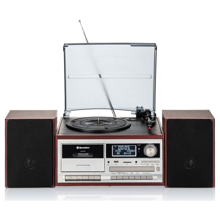 Platine Vinyle Vintage Radio DAB/DAB+/FM, Lecteur CD-MP3 Cassette, Bluetooth USB Roadstar HIF-8892D+BT Bois 32935