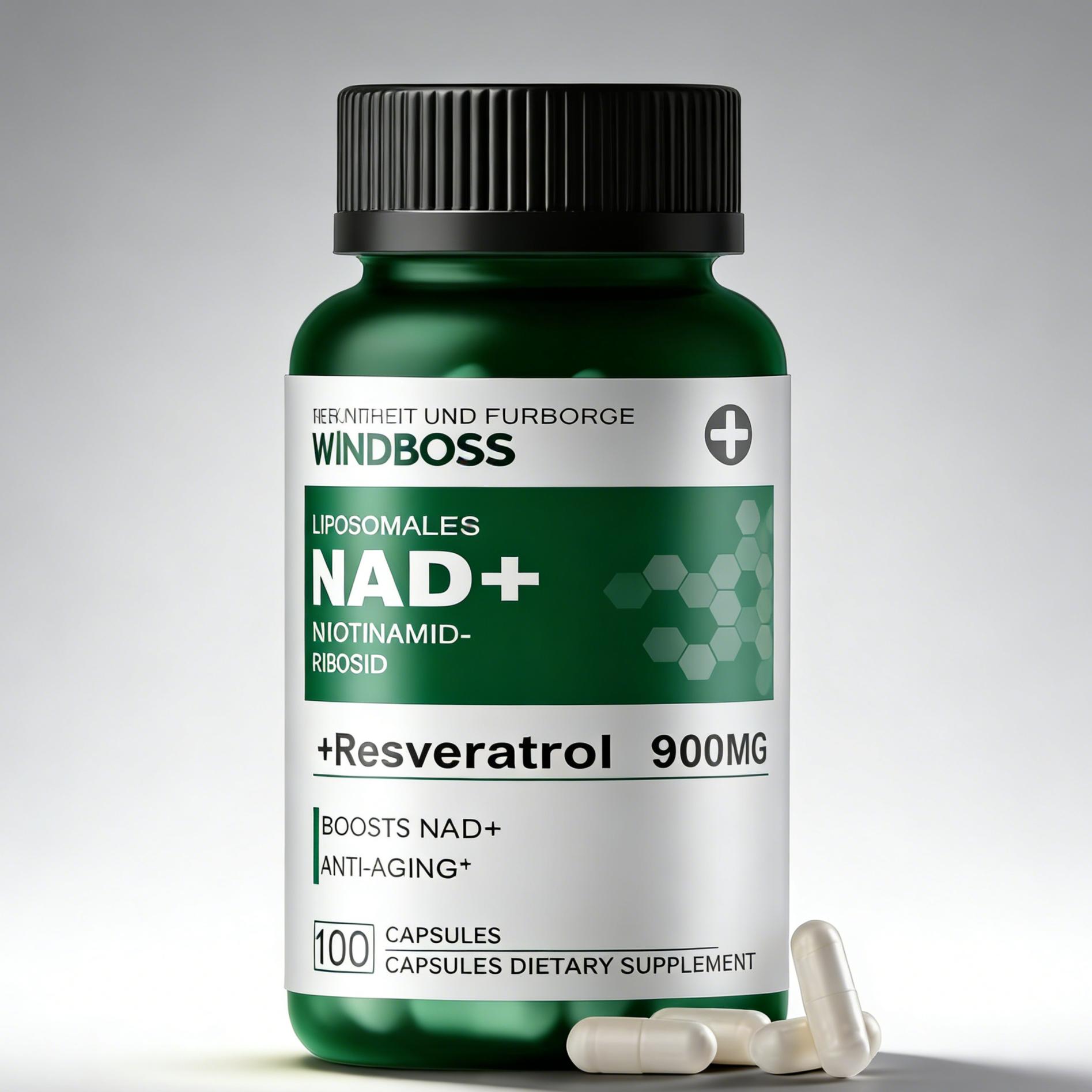Die perfekte Synergie: Windboss NAD+ Liposomale Formel | Kombiniert 900 mg NR, NMN, Trans-Resveratrol und Quercetin für mehr Zellenergie