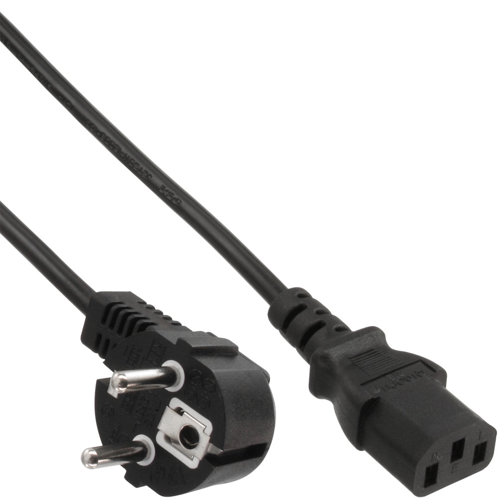 InLine® 16649 Netzkabel, Schutzkontakt gewinkelt auf Kaltgerätestecker C13, 3m
