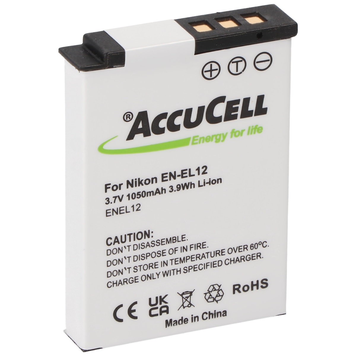 AccuCell Akku passend für Nikon EN-EL12 Akku, CoolPix S610, S610C, S710, 44,5 x 31,9 x 7,9mm