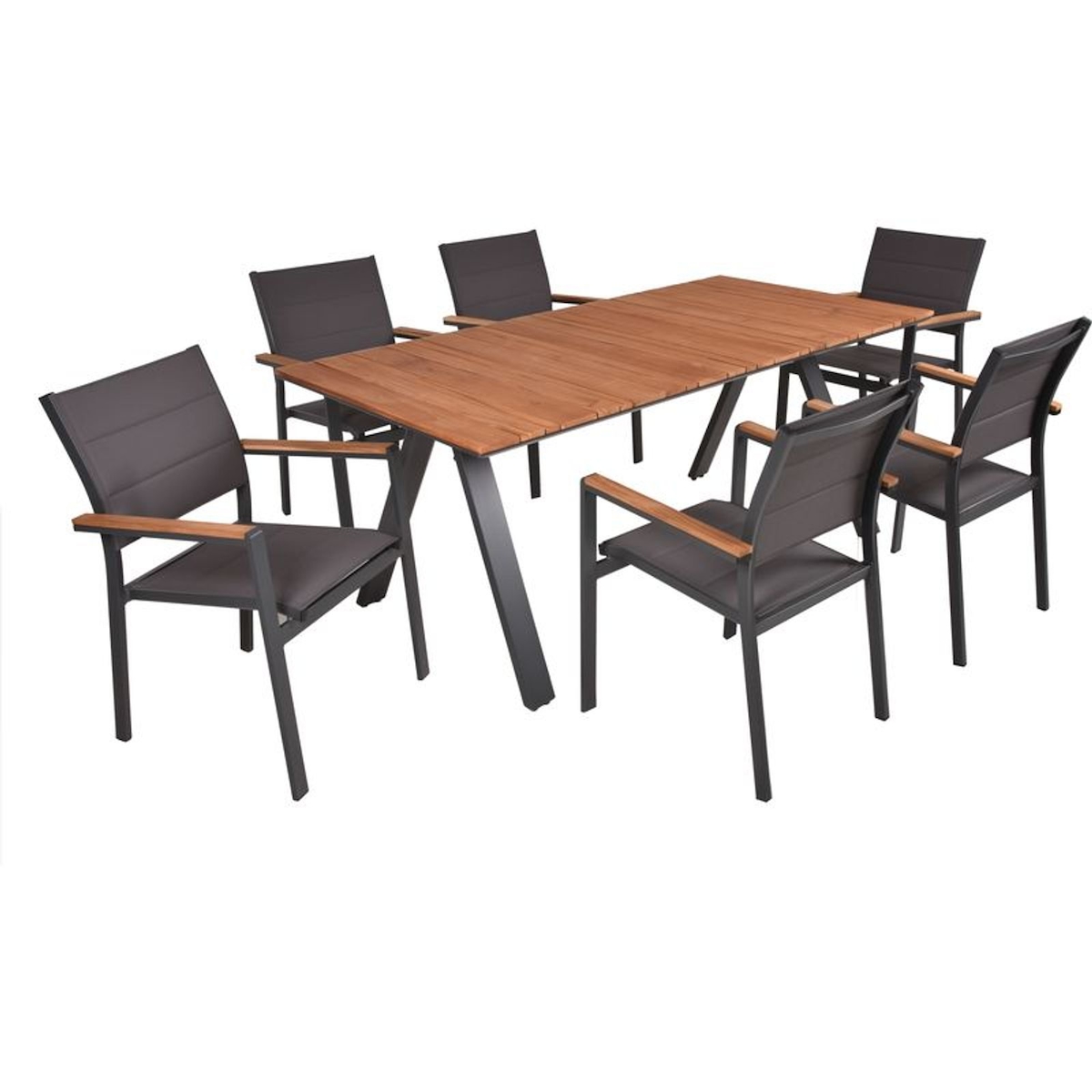 Gravidus Tischgruppe DAVINA Set 09, 7-tlg.; Aluminium, PE 100%, Teak FSC 100%