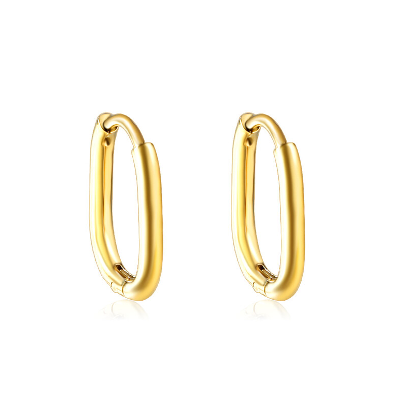 18K PVD Gold Plated Oval Huggie Earrings – Stainless Steel U-Shaped Hoops (17mm x 12mm), Hypoallergenic Sleepers