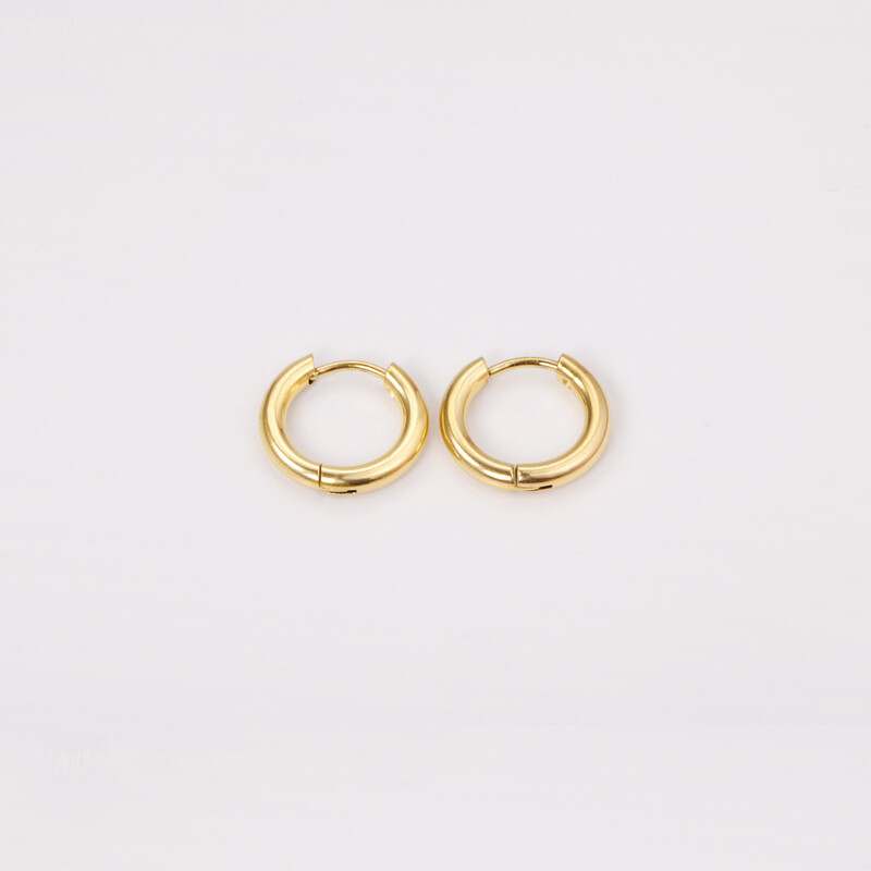 18K PVD Gold Plated Stainless Steel Small Hoop Earrings – 8mm Inner Huggie Hoops, Polished Minimalist Sleepers (Vacuum Plating)