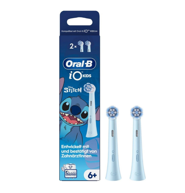 Oral-B iO Kids Disney Stitch Elektrische Aufsteckbürsten, ab 6 Jahren, sanft zu wackelnden Zähnen & Zahnfleisch, für sauberere Zähne, 2er-Pack