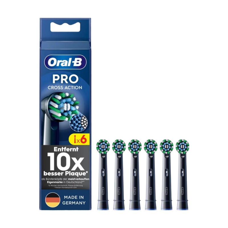 Oral-B Pro CrossAction Original Aufsteckbürsten für elektrische Zahnbürste - hochwertige Zahnreinigung, Ersatzbürsten mit innovativen X-Borsten - Schwarz, 6er-Pack