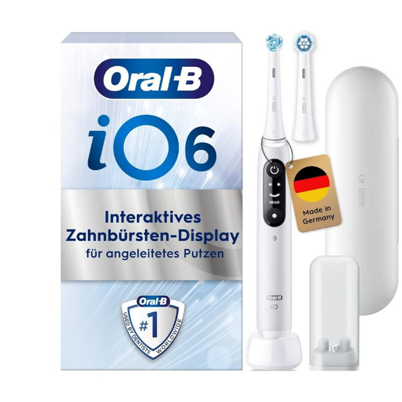 Oral-B iO 6N Elektrische Aufsteckbürste mit Wiederaufladefunktion, Weiß – KI – Interaktives Display – Drucksensor