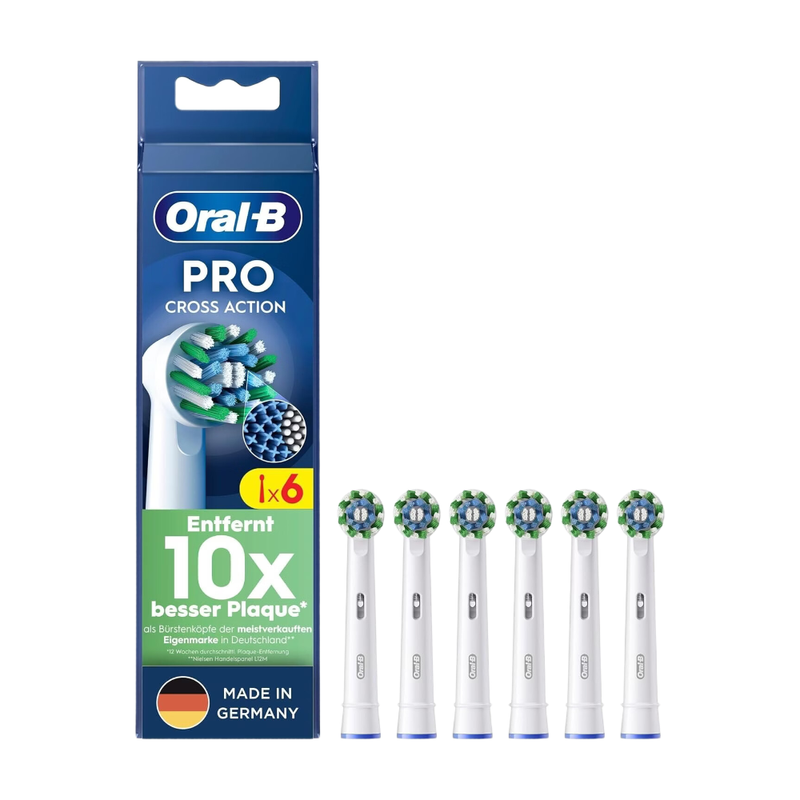 Oral-B Pro CrossAction Original Aufsteckbürsten für elektrische Zahnbürste – Ersatzbürsten für professionelle Zahnpflege mit innovativer X‑Borsten‑Technologie – Weiß, 6er‑Pack