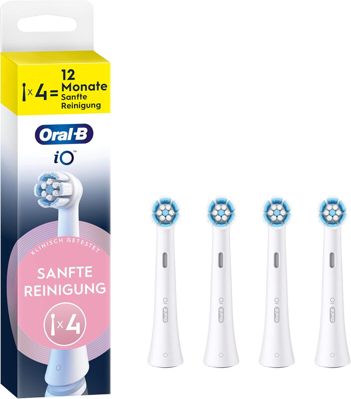 Oral-B iO Gentle Cleaning - Original Ersatzbürstenköpfe für Oral-B iO elektrische Zahnbürsten - Bürstenköpfe, Aufsteckbürste, Ersatzbürsten für empfindliches Zahnfleisch - weiß, 4er-Pack