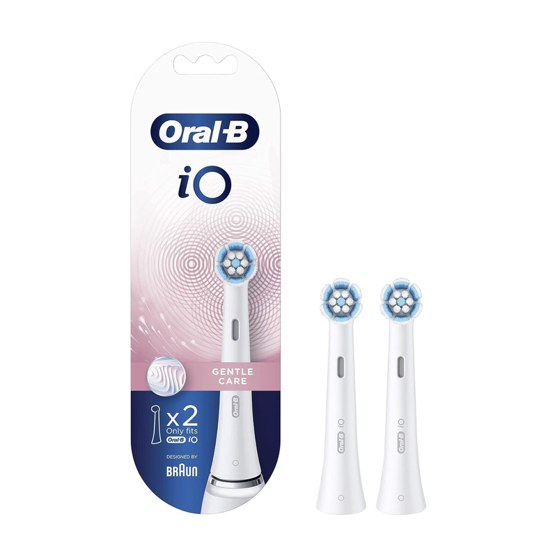 Oral-B iO Gentle Care elektrische Aufsteckbürsten - gedrehte & abgewinkelte Borsten für tiefereinigende Plaqueentfernung - 2er-Pack - Weiß