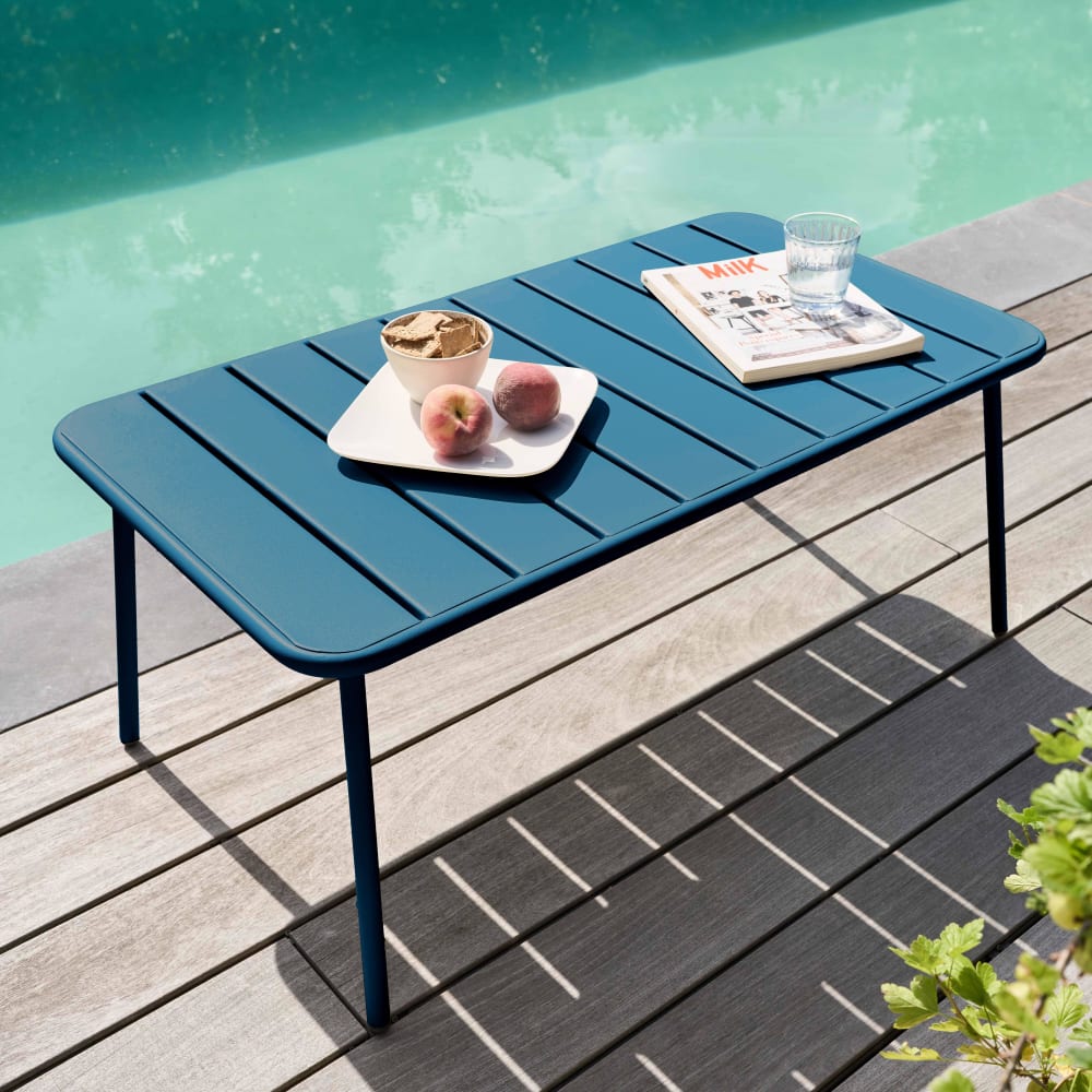 Oviala Table haute de jardin carrée en acier bleu pacific Bleu 70x105x70cm