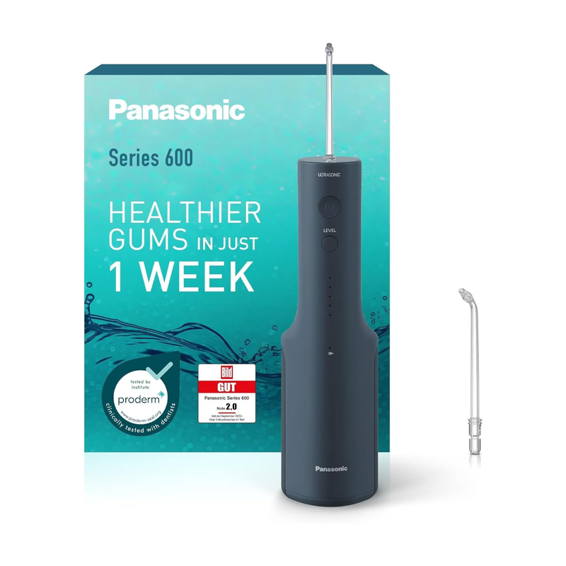 Panasonic Serie 600 Ultraschall-Munddusche EW-DJ66-A303, Dental-Irrigator, kabellose Munddusche, 200 ml, IPX7, 2 Ultraschall-Düsen, 5 Wasserdruckstufen, Reisezubehör, Marineblau