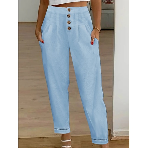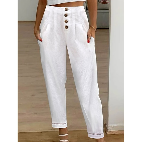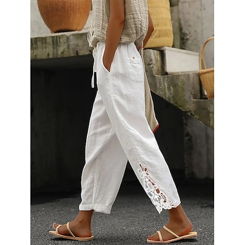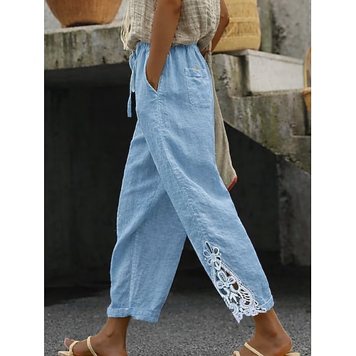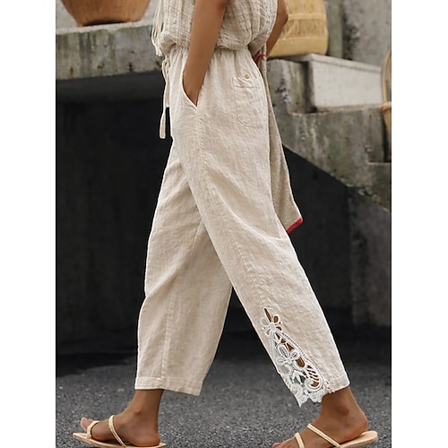 Per donna Pantaloni in cotone e lino Pantaloni Pantaloni casual Vacanza Moda Streetwear Lunghezza intera Vita Alta Semplice Pizzo Tasca Comodità Confortevole Inelastico Quotidiano All'aperto Vacanza