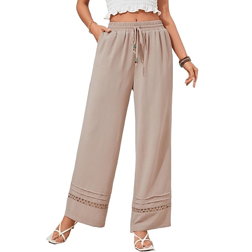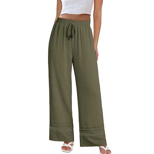 Per donna Gamba larga Pantaloni Pantaloni casual Vacanza Moda Streetwear Lunghezza intera Vita Alta Semplice Pizzo Elastico in vita Confortevole Traspirante Inelastico Quotidiano Vacanza Streetwear