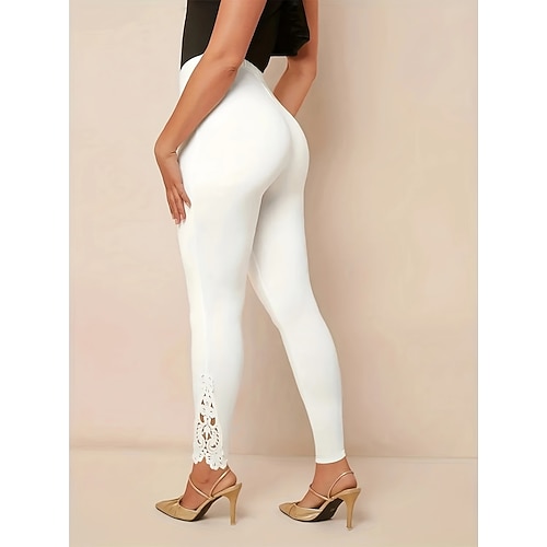 Per donna Pantaloni capri Leggings Leggings comodi Streetwear Casual Lunghezza al polpaccio Naturale Semplice Pizzo Patchwork Elastico in vita Comodo All'aperto Confortevole All'aperto Vacanza Casual