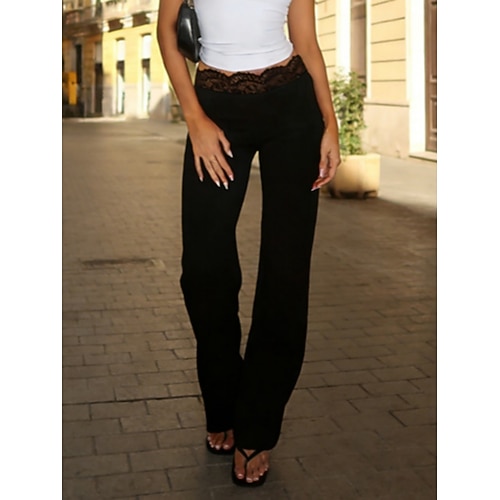 Per donna Pantaloni Pantaloni a Zampa Pantaloni casual Vacanza Moda Streetwear Lunghezza intera Vita Alta Semplice Pizzo Elastico in vita Confortevole Micro-elastico Quotidiano Vacanza Streetwear Nero