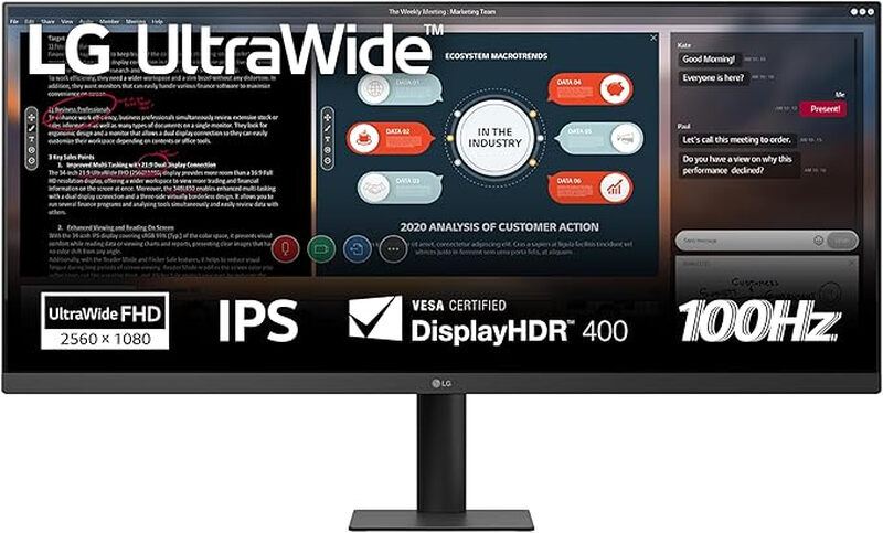 LG UltraWide 34U511A-B.AEU 34" Ultra Wide PC Screen - UWFHD (2560x1080) IPS Panel Resolution, 5ms GtG 100Hz, DisplayHDR 400, sRGB 99% (CIE1931), Tilt, Height Adjustable, Portrait Mode