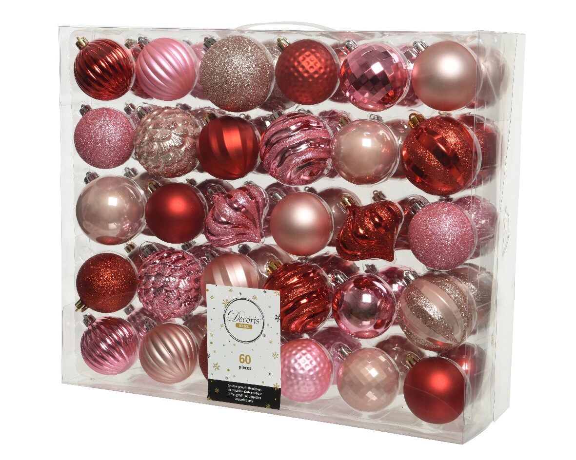60 Weihnachtskugeln 6-7cm Kunststoff Ornamente Christbaumkugeln rot pink rosa