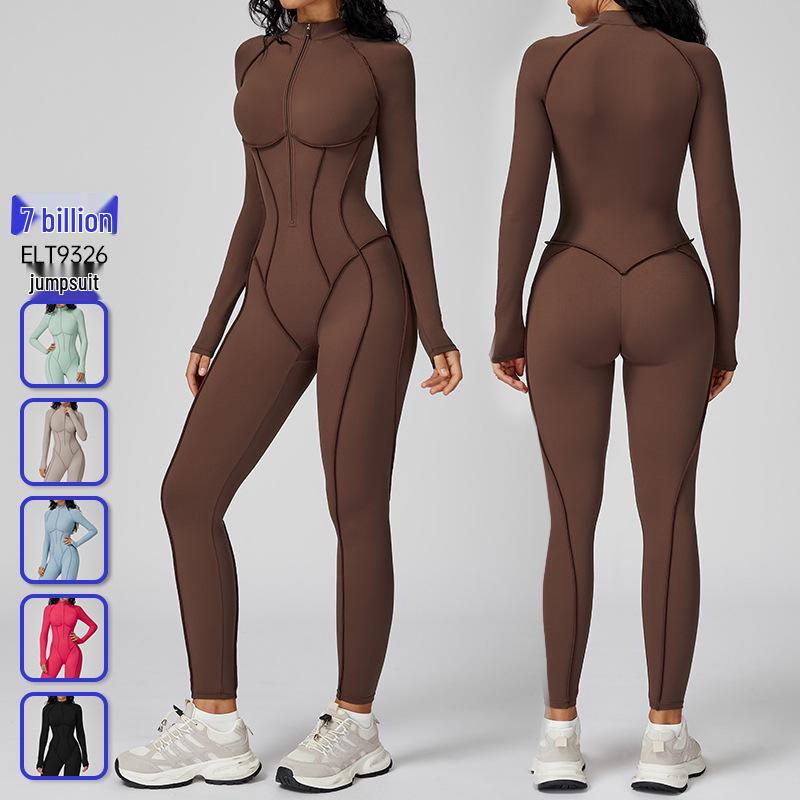 Women's High-Intensity Yoga Jumpsuit: Colorblock, Half-Zip, Stand-Up Collar, One-Piece Fitness Wear (9326). cm