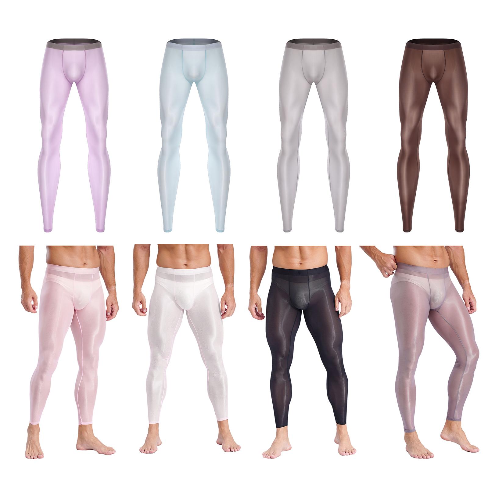 Mens Silky Workout Leggings Ultra Thin Stretch Fabric Bulge Pouch Elastic Waistband See Through Yoga Gym Pants cm umber
