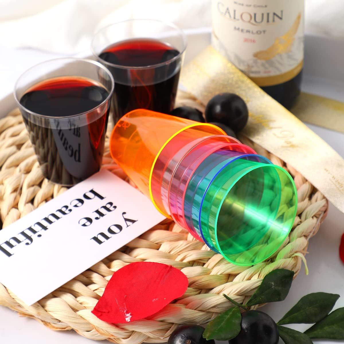 100er oder 24er Pack Shotgläser, 2 oz Einweg Klare Harte Plastikbecher(Multicolor) Wackelpuddingbecher für Party schillernde Partyartikel