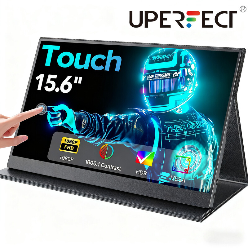UPERFECT Moniteur portable externe tactile 15,6" pour ordinateur portable, 1080p, mini HDTV, USB-C, compatible smartphone et console de jeu, montable VESA