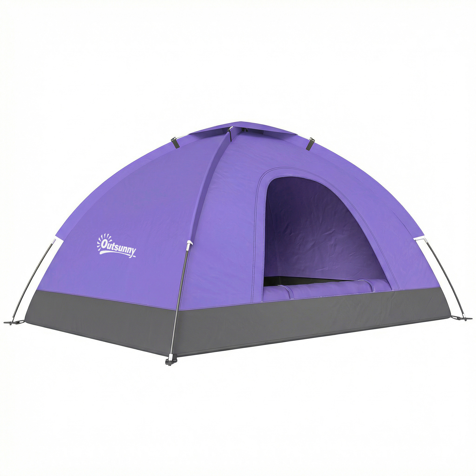 Outsunny 2 Person Camping Tent, Dome Tent with Zipped Doors, Storage Pocket, Portable Handy Bag, Light Purple